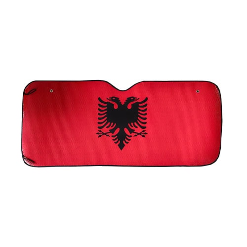 Заштитна фолија за автомобилски стакла со дизајн на знаме, која обезбедува заштита од сонце и приватност.