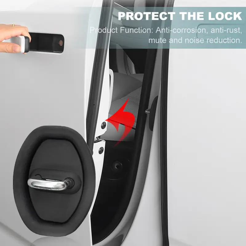 Комплет од 4 заштитни силиконски подлошки за автомобилски брави, дизајнирани да го намалат звукот и вибрациите при отворање и затворање на вратите. Овие подлошки обезбедуваат дополнителна заштита од оштетување и абење на бравите, продолжувајќи го нивниот век на траење. Универзалниот дизајн е погоден за повеќето модели на автомобили, а благодарение на висококвалитетниот силикон, тие се флексибилни, трајни и отпорни на различни временски услови. Лесни за инсталација без потреба од алатки, овие подлошки додаваат практичност и стилска завршница на вашиот автомобил.