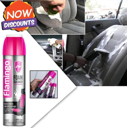 ЗА АВТОМАТСКИ, БРОМ И ДОМА: Повеќенаменското средство за чистење пена Flamingo е особено ефикасно за чистење на тапацир од винил и ткаенина, патосници, теписи и кожа. Совршен за чистење на која било површина што може да се пере или бојадиса. Дејството на пената за длабоко чистење ја крева нечистотијата и помага во обновувањето на вистинската боја и изглед. ЗА ДОМА: Одличен е за чистење на апарати, формика, тела за бањи, асфалт или керамичка плочка, обоени ѕидови, ѕидни облоги, екрани, вентилатори на прозорци, порцелан, бојадисано дрво или метал. Ги отстранува почвите и дамките од тапацирот од винил или ткаенина и од теписите.