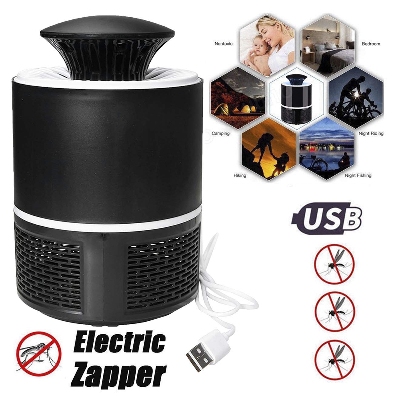 Ефикасна и безбедна лампа со UV светло и вентилатор кој ги привлекува и уништува комарците без употреба на хемикалии или мириси. Идеална за дом, канцеларија или двор, со USB напојување за лесна употреба насекаде.