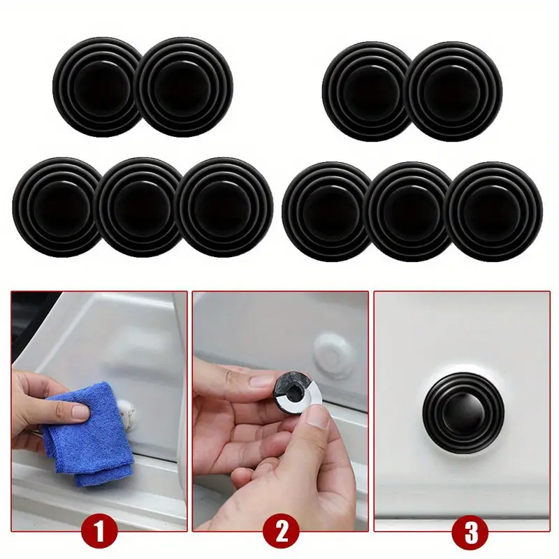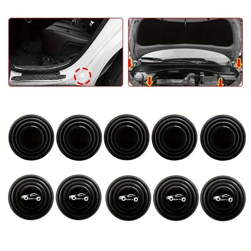 Комплет од 8 силиконски подлошки за звукопотиснување, дизајнирани за врати и багажник на автомобилот. Овие дебели силиконски подлошки имаат функција на амортизери, кои значително ги намалуваат звуците и вибрациите при затворање на вратите и багажникот. Тие помагаат во создавање тивка и удобна атмосфера во возилото, елиминирајќи непријатни бучави и овозможувајќи побезбедно и удобно возење. Подлогите се лесни за инсталација и се идеални за автомобили кои имаат потреба од дополнителна изолација и подобрена заштита од шум.